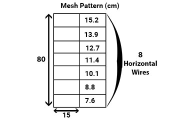 8-80-15 is one of the most popular patterns we sell, with its 8 line wires (8-80-15) giving a total fence height of 80cm (8-80-15) and vertical wires placed 15cm apart (8-80-15). You will also notice that the line wires are spaced at different heights and these height intervals are also listed for your information.